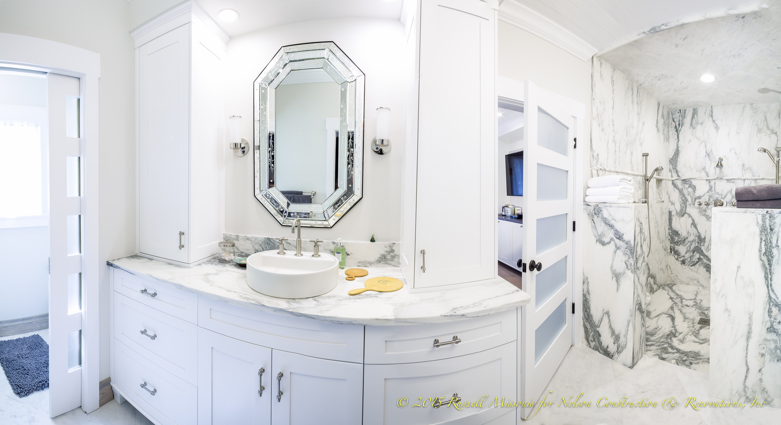 Wow, I just have to say that this house is gorgeous. It is a waterfront property that had so much thought and attention put into it, from the large entrance, to the custom marble shower.